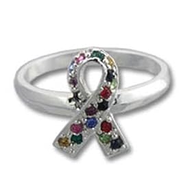 This brand new style of Autism Awareness ring is made of genuine 925 sterling silver and Swarovski Crystals and has genuine multi-colored Swarovski crystal embedded on the front of the ribbon, with Ring size 6. The ribbon measures about 5/8 of an inch tall. The band is thin and lightweight. You are sure to love the superb quality and unique design of this ring.